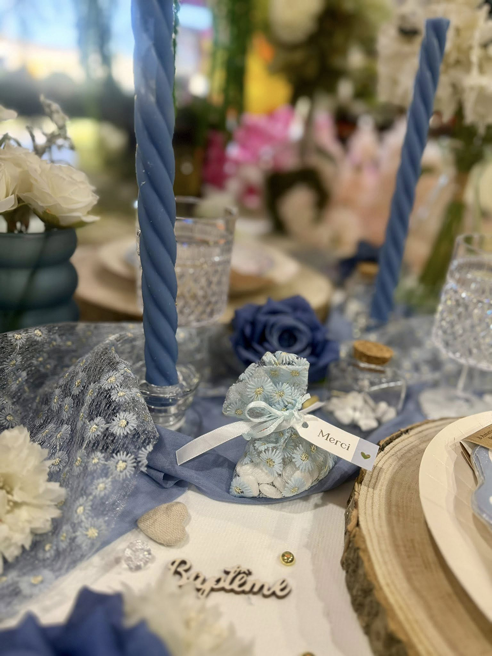 Optez pour la décoration de table de baptême qui conviendra à vos souhaits pour obtenir une fête réussie ainsi que la déco de salle qui mettra tout de suite vos invités dans une ambiance festive. Pensez aux dragées ainsi qu’à leurs contenants pour laisser un souvenir gourmand à vos convives !